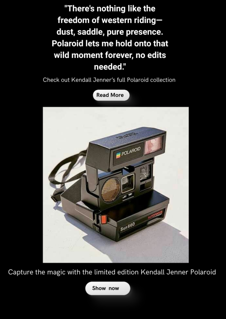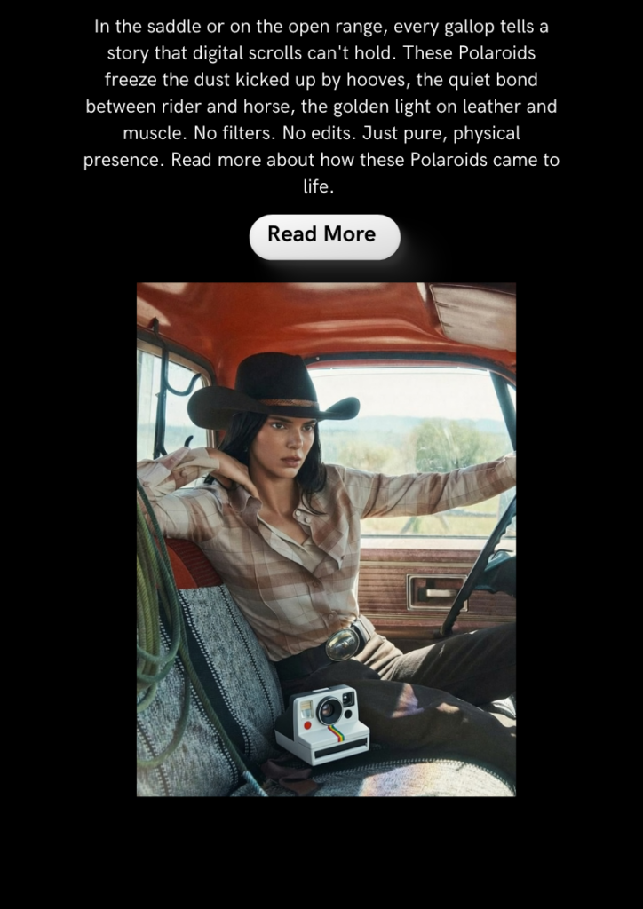 When was the last time you stumbled upon a random picture you took of your friend while she was driving, and you almost crashed? For one of our employees, it was buried in her glove compartment yesterday. She had completely forgotten about that moment until a random Polaroid reminded her of it, and she laughed for 5 minutes straight. That’s the magic of Polaroid. The best part is that you can have that too! You look at screens all day long, whether it is for doomscrolling, work, or school, you can drop it for a single photo, for a memory that will not get lost in time, for a moment of laughter when the intense flash of the camera blasts your friend, for the feeling of simpler times when a photo was meant to be nothing more than just a memory of good times. Buy Polaroid today!